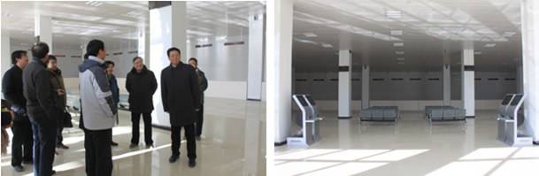 在保稅物流中心卡口上方"青海曹家堡保稅物流中心"以中英文兩種字體呈現(xiàn),海關(guān)標識赫然醒目。王黎明副省長一行在實地查看了1#、2#保稅倉庫、卡口、查驗庫、辦事大廳等設(shè)施,并邊走邊聽取物產(chǎn)集團總經(jīng)理王玉輝關(guān)于工程施工進展情況的匯報。