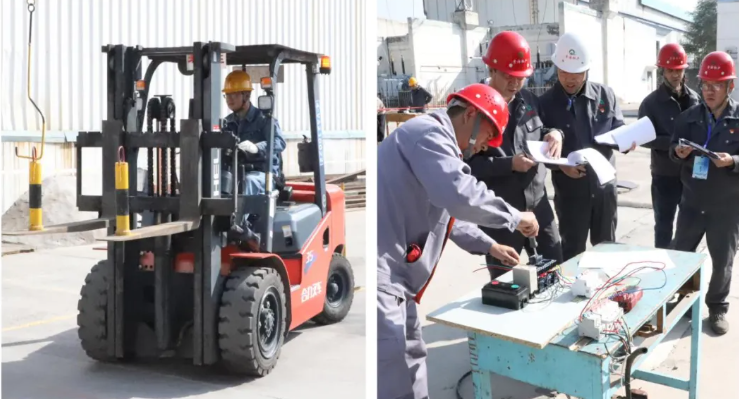 開幕式后,進行了理論知識測試以及叉車、電工兩個項目的實操比拼,拉開了本次競賽的序幕。