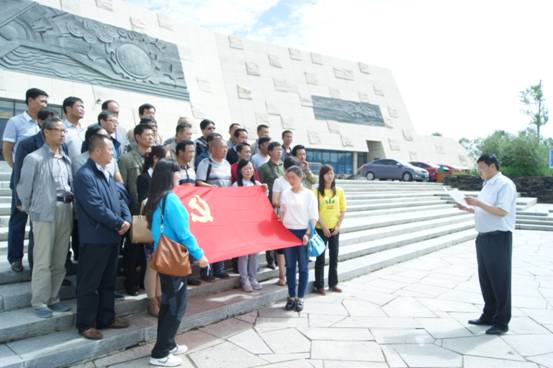 進(jìn)入展館區(qū)域,首先印入臉面的是展館東側(cè)一幅象征"聚"的雕塑,如長天利劍直刺云霄,給人一種格外醒目的提示,時時刻刻警示華夏兒女、炎黃子孫,凝聚才能產(chǎn)生無窮的力量,凝聚才能實現(xiàn)中華民族偉大復(fù)興的中國夢,這個"聚"也象征著"核聚變"產(chǎn)生的摧枯拉朽之巨大能量,不斷提升中國的國際形象。11:00時整,展館正面,公司黨員莊嚴(yán)的托舉起鮮紅黨旗,全體黨員干部緊密團(tuán)結(jié)在一起,進(jìn)行愛國主義教育。"為黨旗爭光,為黨旗添彩",公司黨委書陳海龍為獲得省國資委系統(tǒng)優(yōu)秀黨員稱號的王兆明同志在這個特殊的日子里頒發(fā)證書、勛章,并激勵全體黨員向王兆明同志學(xué)習(xí),切實發(fā)揮先鋒模范作用,為公司"降本壓費、提質(zhì)增效、扭虧增盈"做出自己的努力和貢獻(xiàn)。