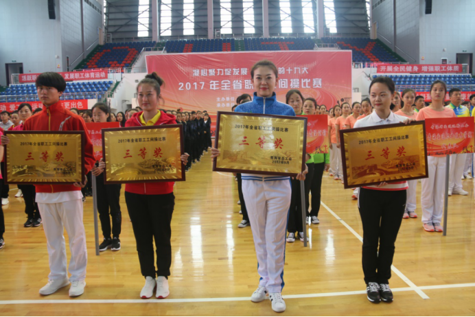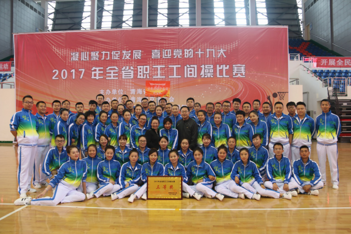 (集團黨群部 訊 劉麗萍/文攝)為認真貫徹落實全民健身綱要精神,喜迎黨的十九大順利召開,營造青海物產(chǎn)"全民健身、快樂工作、健康生活"的良好氛圍,展示廣大干部職工積極向上、團結(jié)協(xié)作、開拓創(chuàng)新、務實奮進的精神風貌。在集團黨委領(lǐng)導的高度重視下,在所屬公司的大力支持下,青海物產(chǎn)集團代表隊于2017年9月26日參加省總工會舉辦的"凝心聚力促發(fā)展、喜迎黨的十九大"全省職工工間操比賽,在26支參賽隊伍中脫穎而出,取得第三名(三等獎)的好成績。
