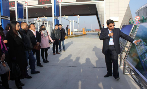 (臨空公司訊?李曉燕/文 鐘雄龍/攝)2017年11月3日上午9時,由省政府口岸辦、青海曹家堡保稅物流中心(B型)管委會及青海省臨空經濟區(qū)開發(fā)投資有限公司在青海曹家堡保稅物流中心(B型)聯(lián)合舉辦了青海曹家堡保稅物流中心(B型)推介招商暨青海國際貿易"單一窗口"(標準版)推廣培訓會,此次會議由海東市政府、省商務廳、西寧海關、省財政廳、省國稅局、省外匯管理局、青海檢驗檢疫局、青海邊防總隊、海東工業(yè)園區(qū)管委會、省政府口岸辦及70余家進出口企業(yè),約160余人參加。期間,實地參觀了青海曹家堡保稅物流中心(B型)卡口、堆場、保稅倉庫、辦事大廳、監(jiān)控中心。臨空開投公司黨支部書記、副總經理葉皓詳細介紹了青海曹家堡保稅物流中心(B型)項目規(guī)劃建設、項目驗收、封關運營、業(yè)務模式及投資環(huán)境和運營管理發(fā)展等基本情況,公司副總經理賈麗君陪同。