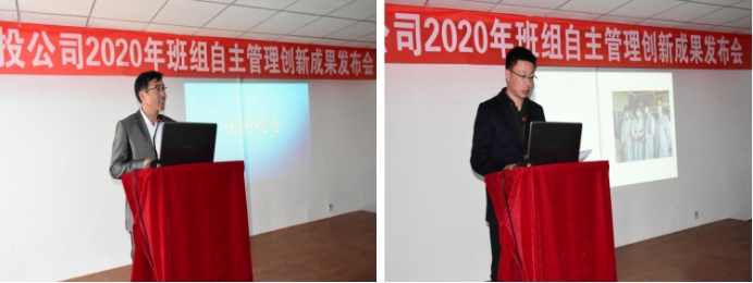 發(fā)布會上,發(fā)布人員向與會人員從成果的項目背景、創(chuàng)新原因和目的、項目目標、實施方案、創(chuàng)新特點、效益分析及推廣情況幾個方面運用PPT的形式,詳細介紹了班組自主創(chuàng)新成果。
